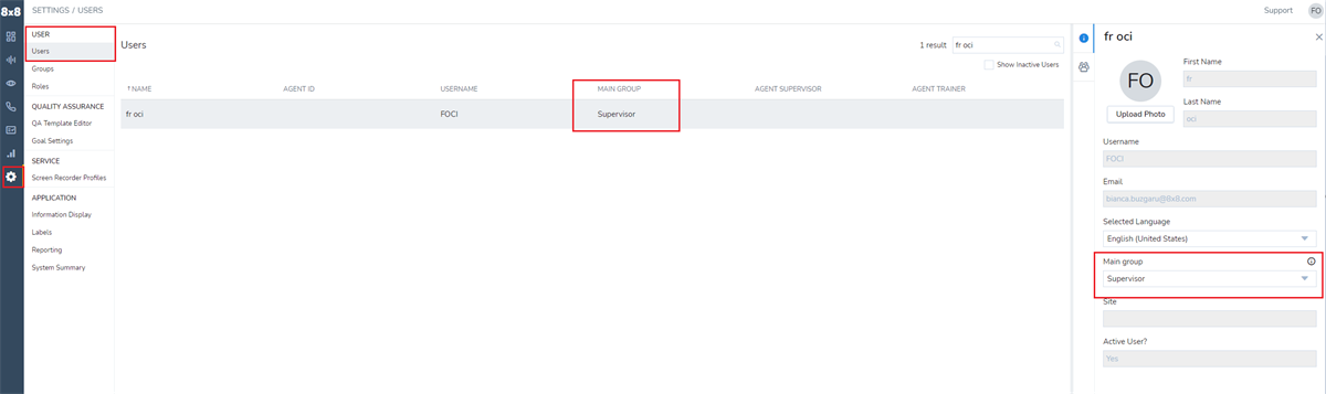 3. Search for the logged-in user, in our case a supervisor, and set a Main Group
