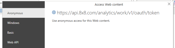 webdata = Web.Contents("https://api.8x8.com/analytics/work/v1/oauth/token", [Headers=[#"8x8-apikey"=apikey, #"Content-Type"="application/x-www-form-urlencoded"], Content = Text.ToBinary(body)]),